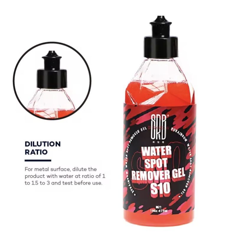 يتم مسح بقع الماء المتاكسدة بمادة s10 بواسطة فوطه جافه و بعد ذلك غسل مكان المادة و الحصول على نتيجة ممتازة